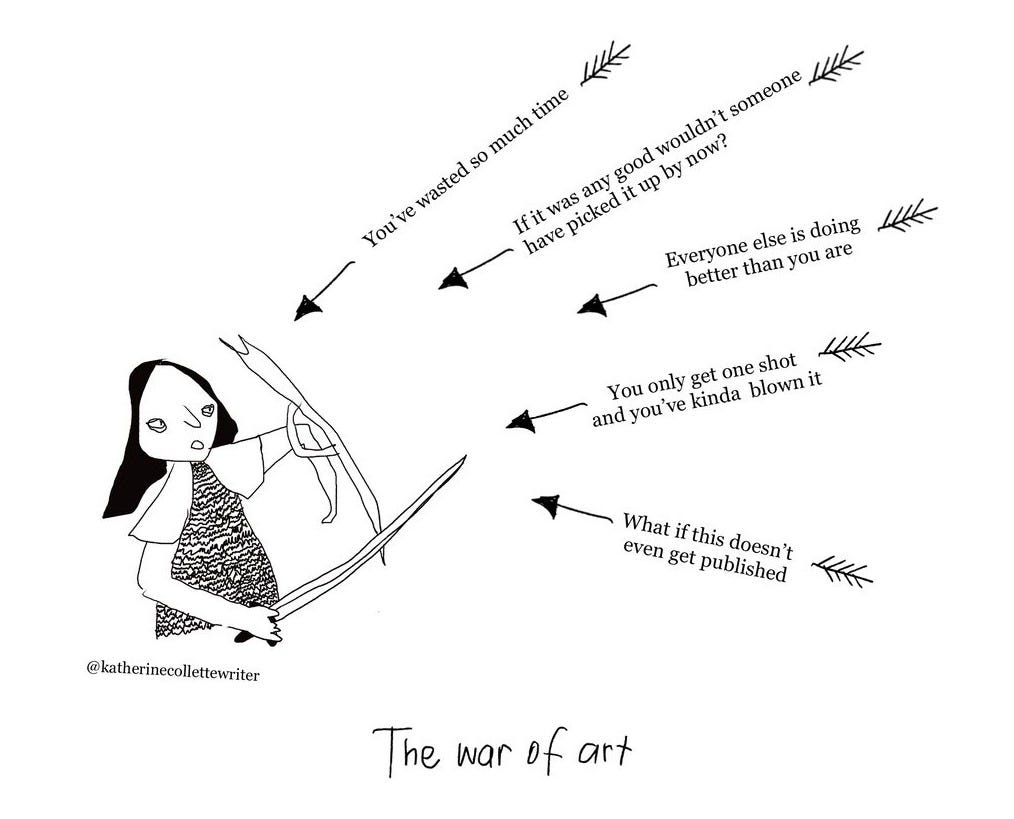 Second P.S. — Re cartoon caption — there’s a book with the title ‘The War of Art’ by Stephen Pressfield. I haven’t read it! But I love this idea, of the war of art